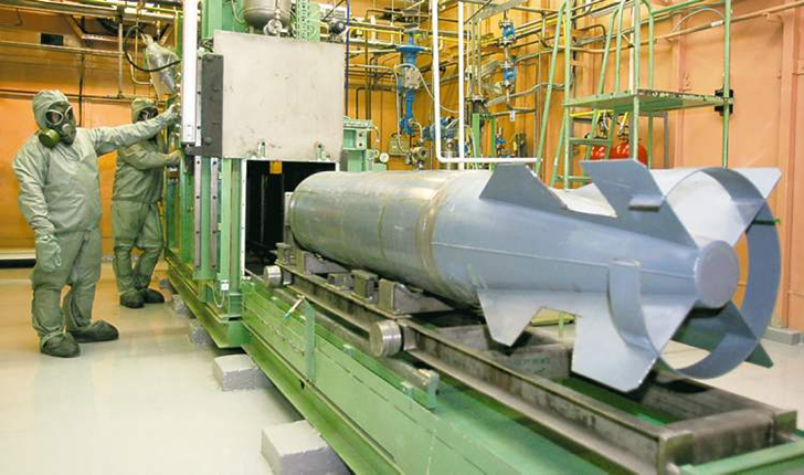 Διαδικασία διάλυσης βόμβας σε οριζόντια περιστρεφόμενο κύλινδρο εκτόνωσης