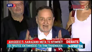 «Δεν είναι το καλύτερο πράγμα να κάνουμε τρομοκρατία για ένα πράγμα που δεν έχει συζητηθεί καθόλου. Δεν έχει συζητηθεί το θέμα του εθνικού νομίσματος με ευθύνη του κατεστημένου και των εγχώριων διαπλεκόμενων ΜΜΕ. Το ευρώ είναι καταστροφή και το μνημόνιο είναι καταστροφή. Δεν υπάρχει μνημόνιο καλό και καλό. Όλα τα μνημόνια είναι καταστροφικά. Η επιλογή εθνικού νομίσματος δεν είναι καταστροφική. Έχουν εθνικό νόμισμα 10 χώρες της ΕΕ και δεν έχουν πρόβλημα. Δεν μπορεί να γίνεται μπαμπούλας το εθνικό νόμισμα. Θα ενισχύσει τις εξαγωγές και θα δώσει ρευστότητα για την ανάπτυξη. Αυτή η συζήτηση πρέπει να γίνει όχι όμως σε 1,5 λεπτά που έχουμε στην διάθεσή μας» απάντησε ο κύριος Λαφαζάνης.