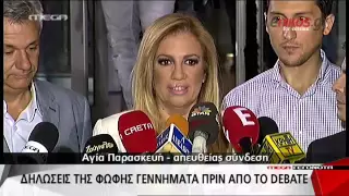 Την Φώφη Γεννηματά ρώτησε κατόπιν η Σία Κοσιώνη: «Το ΠΑΣΟΚ κατηγορήθηκε ότι εκχώρησε εθνική κυριαρχία βάζοντας την χώρα στα μνημόνια. Παίξατε το γεωπολιτικό χαρτί της χώρας όπως έκανε ο Τσίπρας»; «Σήμερα επιβεβαιώνεται η εθνική γραμμή που χάραξε το ΠΑΣΟΚ από το 2010. Μια είναι η επιλογή: η παραμονή στο ευρώ στην ευρωζώνη. Το ΠΑΣΟΚ το ξεκίνησε μόνο του και λοιδορούμενο. Σήμερα όλοι αναγνωρίζουν ότι άλλος δρόμος θα ήταν της φτωχοποίησης. Αυτό το χαρτί δεν το έπαιξε ο Τσίπρας. Πήγα μόνη μου 3 φορές στους ευρωπαίους εταίρους σοσιαλδημοκράτες. Δεν το έκανε το τραινάκι του τρόμου Τσίπρα Καμμένου. Τους είπα να κοιτάξουν τον ευρωπαϊκό χάρτη και να σκεφτούν τι θα είναι αν δεν εντάσσεται η Ελλάδα την ώρα που υπάρχουν τόσα προβλήματα. Αυτό έγειρε την πλάστιγγα».