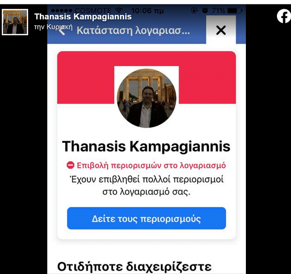 Όπως έχει κάνει, λοιπόν, σε δεκάδες αντίστοιχες περιπτώσεις, η πλατφόρμα του Facebook, λειτουργώντας με καθαρά πολιτικό κριτήριο -και όχι με κάποιον αυτόματο “αλγόριθμο” που “μπερδεύτηκε” ή μπορεί κανείς να “ξεγελάσει”, μας ενημέρωσε πως υποπέσαμε σε συνεχόμενες παραβιάσεις των όρων της Κοινότητας -sic- και γι’ αυτό η σελίδα μας στο Facebook έχει μειωμένη διανομή, μαζί με άλλους περιορισμούς, και κινδυνεύει να καταργηθεί, να πάψει να είναι δημοσιευμένη.