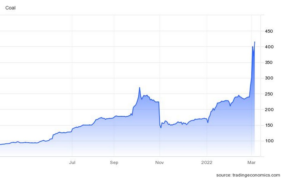 Η τιμή του άνθρακα έχει ανέβει περισσότερο από 100% από τις αρχές του 2022, με το προηγούμενο ανοδικό κλίμα να έχει ήδη τροφοδοτηθεί από διακοπές εφοδιασμού σε κορυφαίες εξαγωγικές χώρες όπως η Ινδονησία και η Αυστραλία.